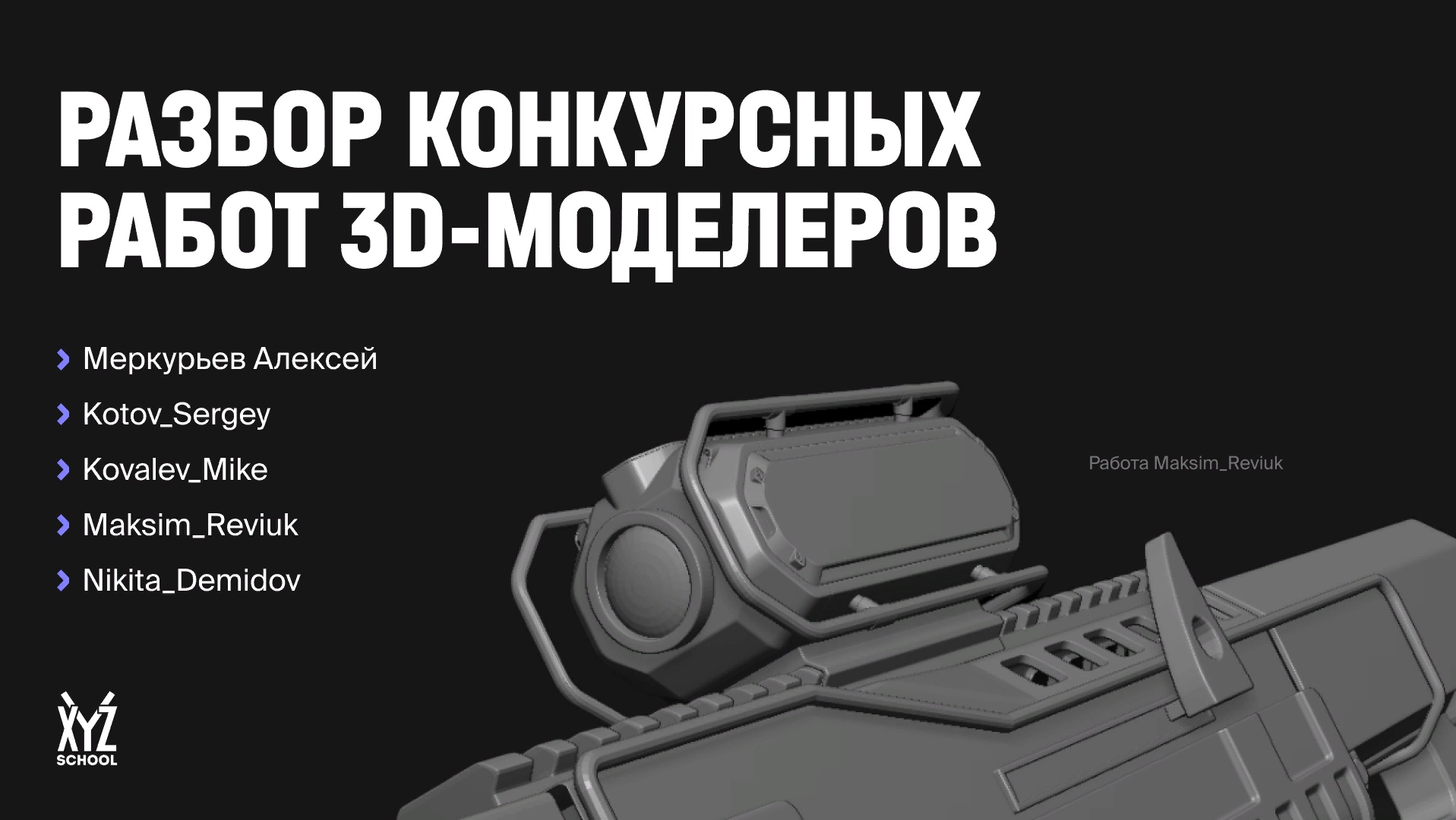 Проверяющий курса Draft Punk Илья Аржанов разобрал часть 3D-работ участников конкурса на 23 февраля. В этой части разобраны: Автомат Калашникова Меркурьева Алексея;