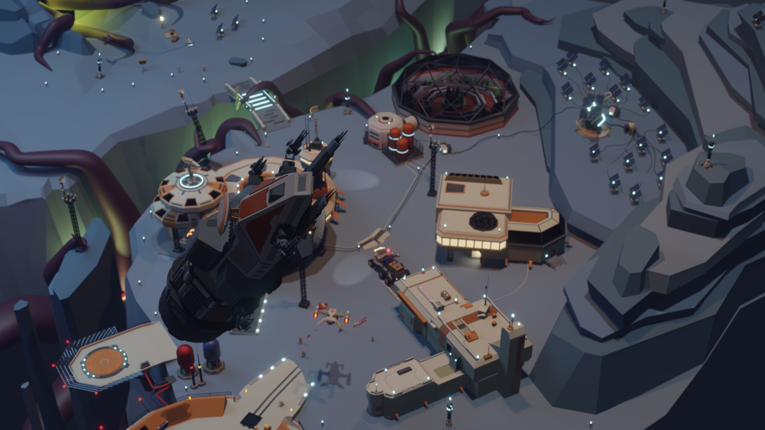 Долгое время не мог определиться с основным направлением концепта. На этапе блокинга перепробовал множество вариантов, но главный тезис не менялся: дрон должен был летать и ощущаться ремонтником/помощником.